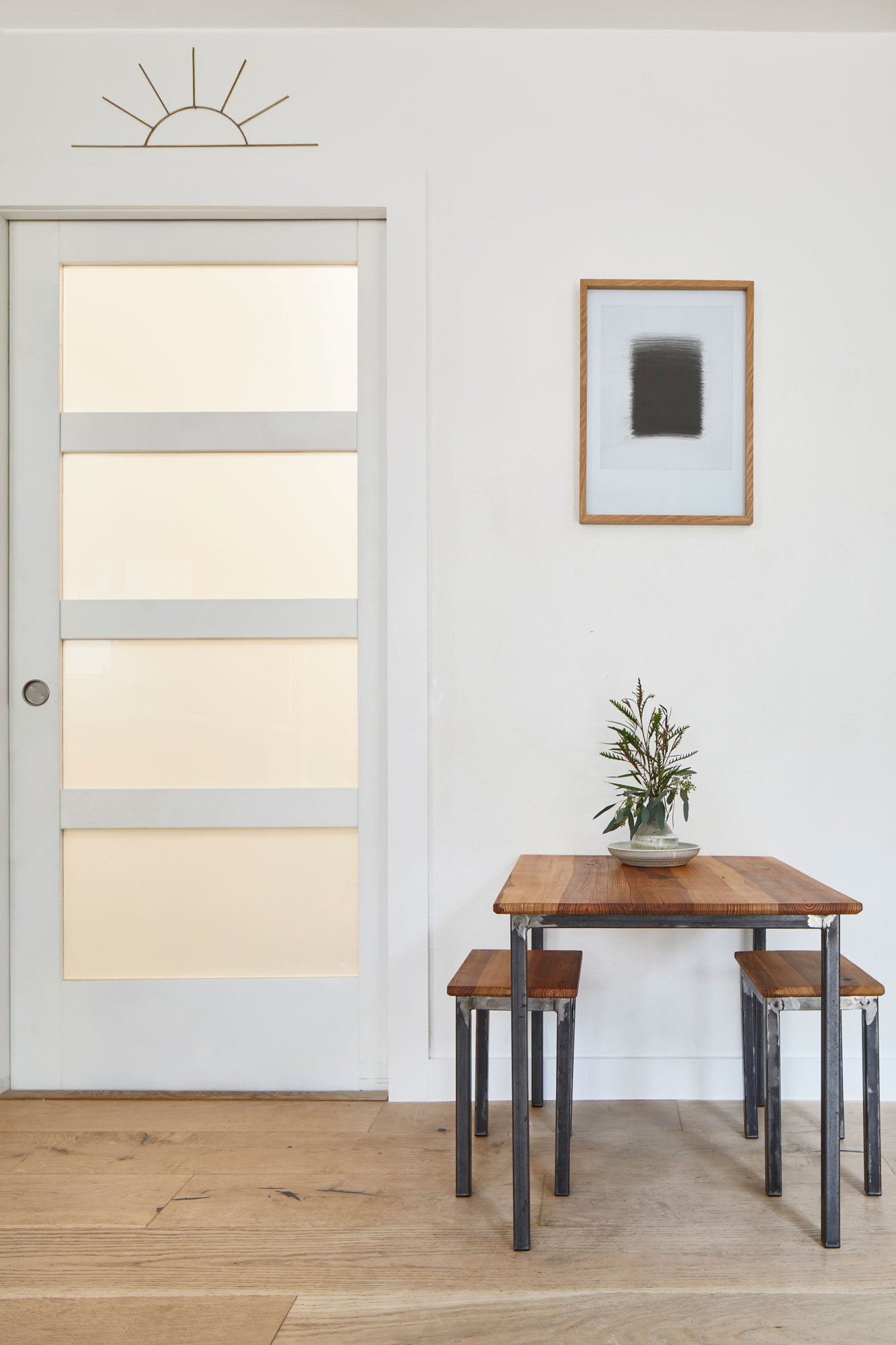 Suzanna partnered with woodworker Dave Massman of Watchman Woodworks to create a custom warm and white Scandinavian-inspired kitchen for his young family. .