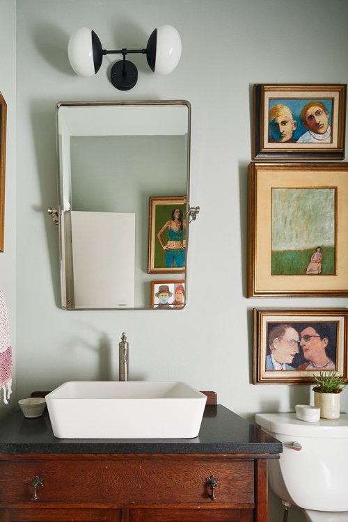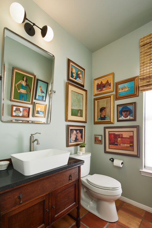 Three severely outdated bathrooms were overhauled for a creative client whose vintage collections inspired bright and quirky design touches, linked thoughtfully to the rest of the home.